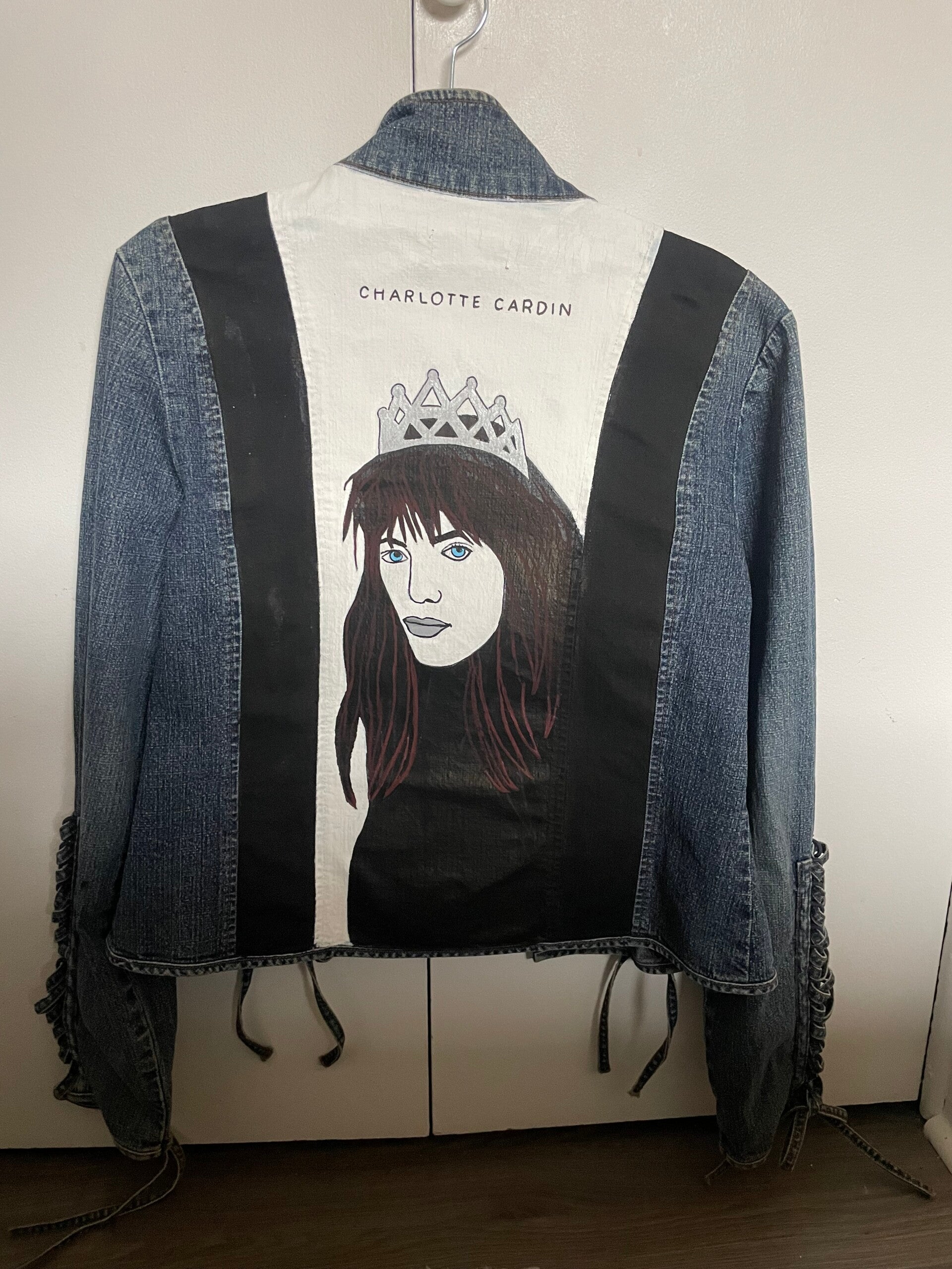 Hand painted with fabric paint and varnished. Hand wash carefully only. Air dry. / Peint à la main avec peinture pour tissus et vernis. Laver à la main délicatement. Secher à l'air libre.