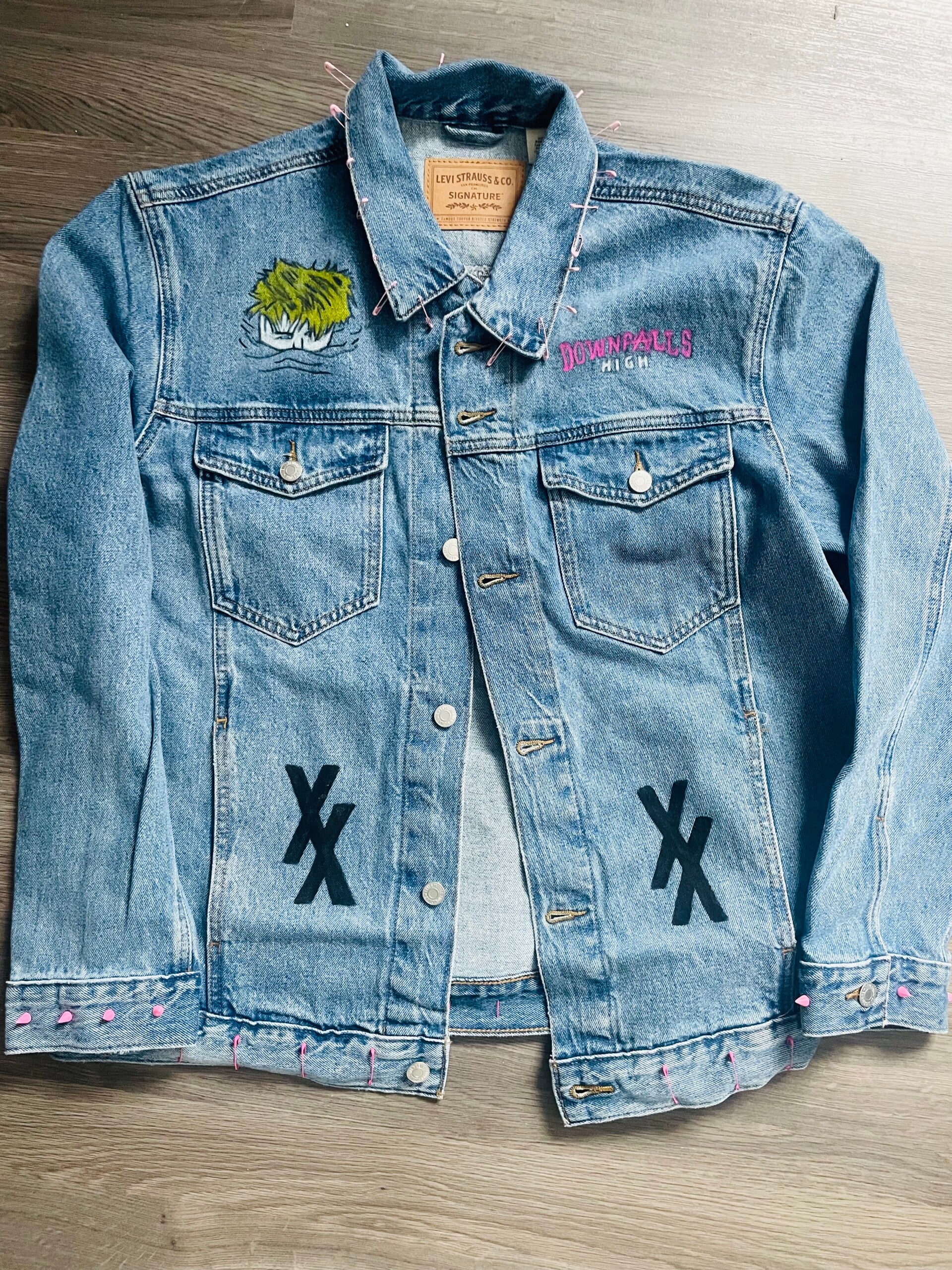 This jacket looks like it jumped straight out of the Tickets To My Downfall universe — loud colors, messy feelings, and every “I don’t care but actually I care a LOT” vibe stitched into the denim.